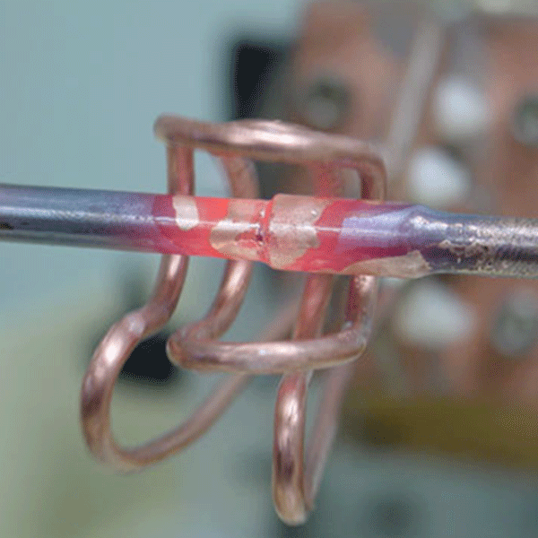 ● 因?yàn)楦哳l電流通過(guò)感應(yīng)器而產(chǎn)生電阻熱,因此在高功率應(yīng)用場(chǎng)合,推薦采用φ6以上或者φ8,壁厚>1MM的紫銅管,或相當(dāng)尺寸的方形銅管,以減少銅的熱損耗,提高加熱效率。若銅管太小或太長(zhǎng),其電阻熱很大,將會(huì)使感應(yīng)器燒損。